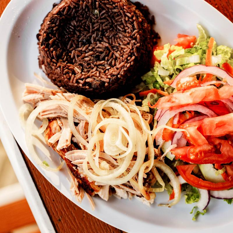 With Ham, Chicken, Beef, and Sweet plantains | Shrimps could be added