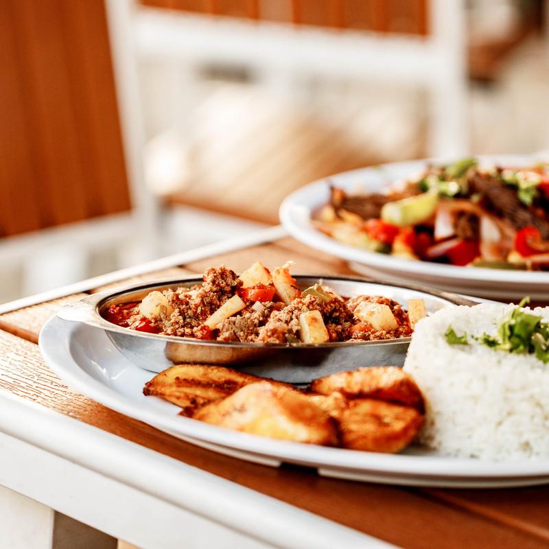 Including scrambled eggs, bacon or sausage, Cuban toast, and home potatoes